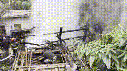 八月二十三日凌晨,贵州六盘水市钟山区一个农场窝棚发生火灾,火势已经蔓延到附近的猪圈。