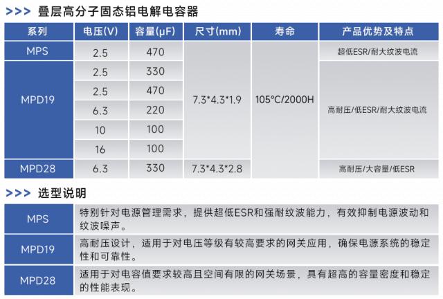 叠层高分子固体铝电解电容器基于这些问题,为服务器网关提供了可靠的解决方案,以确保卓越的性能。
