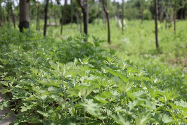 艾草,又称艾蒿,是一年生草本植物,其色素成分主要集中在植物的叶子上,使艾蒿成为提取绿色染料的天然来源。新艾叶可以染成嫩绿色和嫩黄色,陈艾可以染成浅黄色,不同的媒染剂也可以染成棕色。