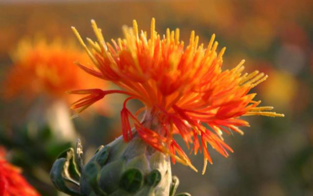 红花是菊科红花的一年生草本植物,也叫红蓝花和刺红花。它可以直接染色,工艺简单。染色的颜色不仅仅是一种红色,而是一种非常丰富的颜色。