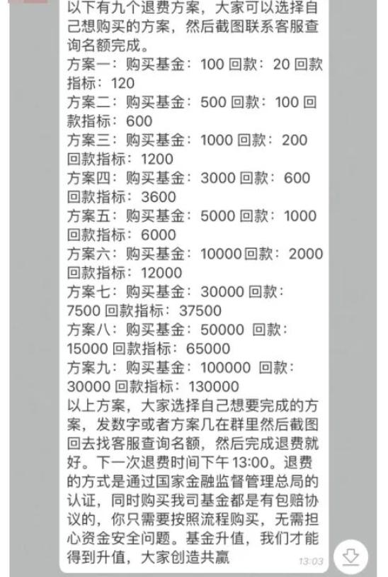 “客服”表示,之前的公司已经被一家基金公司收购,所以现在提供的退款渠道只能通过购买基金来升值,还发了伪造的营业执照来消除顾虑。随后,半信半疑的朱先生在客服的指导下下载了一款金融理财app,并根据付款计划购买了基金。