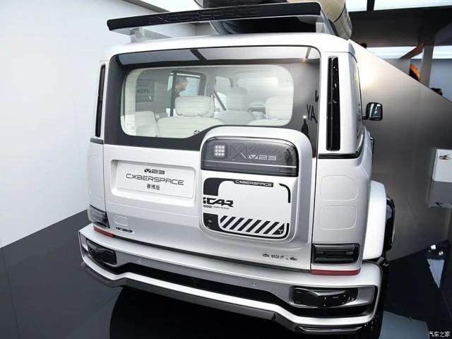 简单回顾一下新车的外观,iCAR V23 CYBERSPACE 赛博版涂有金属哑光银,前格栅、轮眉等细节加入高亮黑配色,非常有辨识度。在此基础上,该车配备了前后保险杠、车顶等形状鲜明的车顶。 LED 灯光,车顶行李架,碳纤维车顶尾翼。与此同时,新车配备了光面封闭式铝合金轮圈。