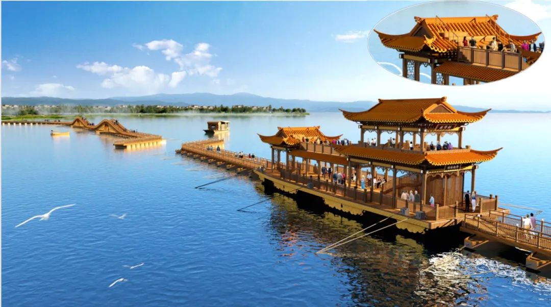 根据项目设计图,人行栈桥的主要形式是画船。建成后,它将与大观公园的大观楼和石画船遥相呼应,成为草海中的新景观。