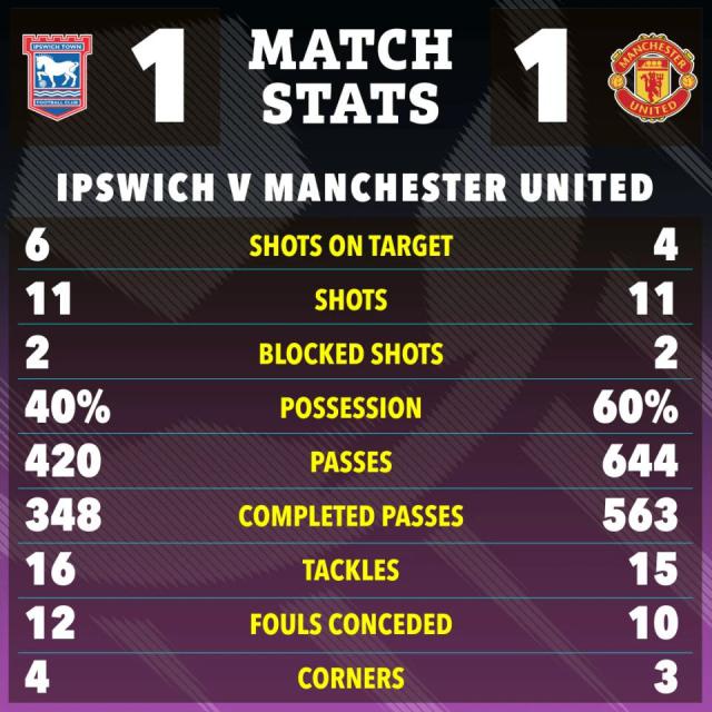 在第 43 在几分钟内扳平比分之前,伊普斯维奇还有另一个得分机会。幸运的是,奥纳纳拯救了曼联,并将利亚姆 · 德拉普小禁区线上劲射避而不见。