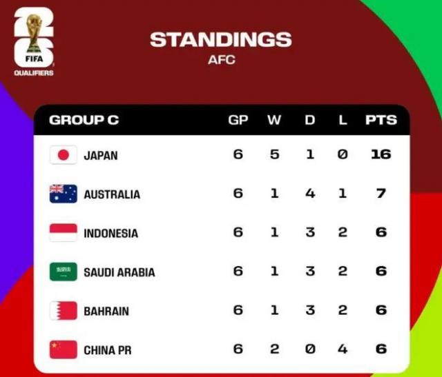 日本是小组中表现最好的球队,无论是积分、进球、净胜球还是失球。即使他们在接下来的四场比赛中没有得到一分,他们也可以锁定小组前两名,因为澳大利亚、沙特阿拉伯、印度尼西亚、巴林和国家足球队不可能赢得所有的胜利。如果提前三轮晋升世界杯,将创造日本历史上最快的资格赛出线记录。