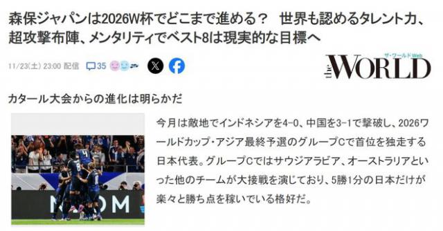 18 第六轮强赛结束后,日本 6 轮积 16 分,打入 22 球且仅丢 2 球,领先第三名 10 分数,距离提前晋升只有差距。 3 分数,日本多家媒体发布了一份文件,其中《雅虎体育》指出,只要下一轮获胜,就可以创造日本队历史上最快的出线记录。《WORLD》提前发文日本展望 2026 年度目标,冲进 8 强者完全有希望。