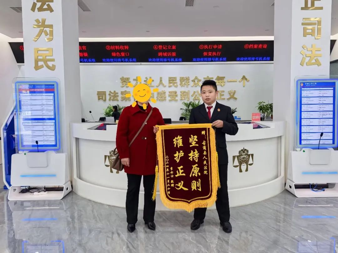 “彭法官,非常感谢!多年前,贷款这么快就帮我落实到位,帮我们追回多年的欠款。”近日,申请人李某向古邈县人民法院执行局发出一面横幅,上面写着“维护正义,坚持原则”。