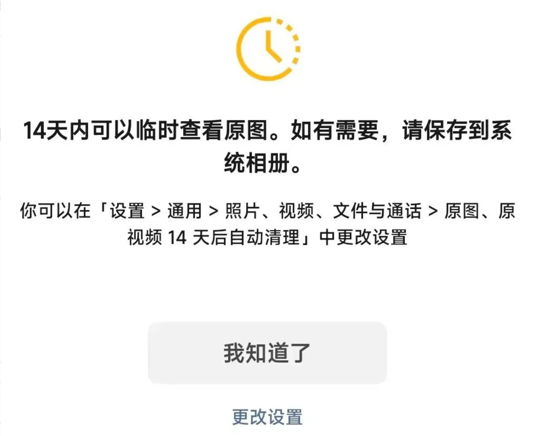 总之,“原图原视频14天后自动清理”功能,目前微信正在进行灰度测试,对于大多数用户来说还是很实用的,满足了发送原图原视频和后续查看一般画质的需求。