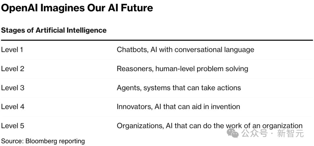 在OpenAI提出的框架中,AGI的不同层次被定义。具体来说,它是一个更独立、更独立的系统,从基础推理者发展到更智能的系统,再到在现实世界中付诸行动模式。
