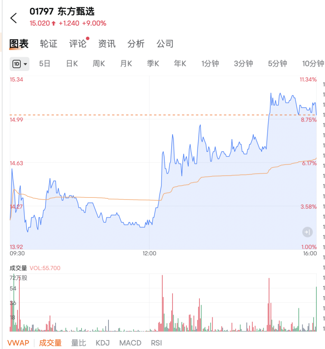 个股方面,泡泡玛特涨幅超过5%,获得机构看好国外市场扩张;由于前CEO出现在直播中,东方选股价格大幅上涨。