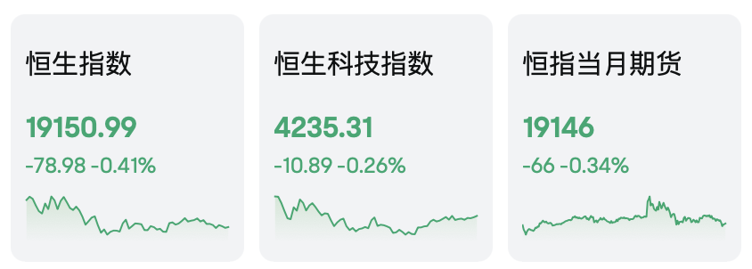十一月二十五日,港股小幅下跌,恒生指数下跌0.41%至19150点,恒生科技指数下跌0.26%至4235点。