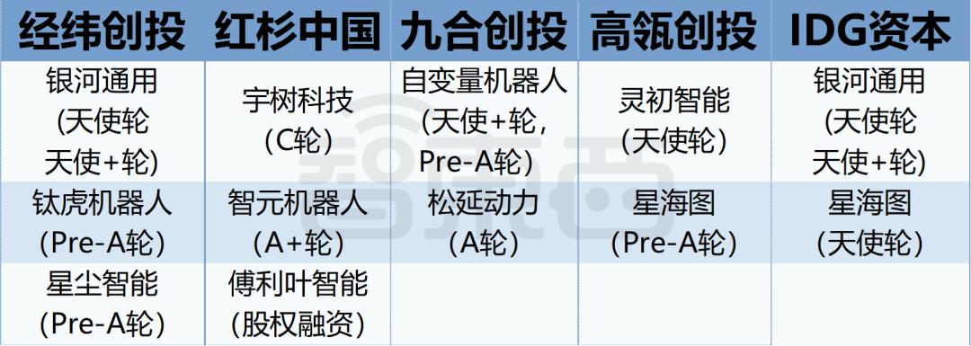 ▲部分VC、PE 投资于2024年的人形机器人领域(智物造表,数据整理自网络,如有遗漏,欢迎补充)
