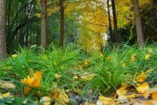 低头是由落叶铸成的五彩缤纷的小路。