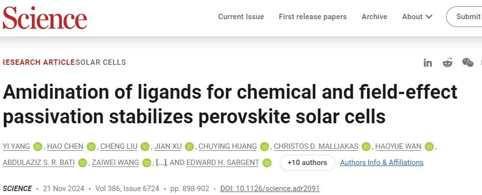 [复材信息][复材信息]Science:钝化器基化稳定钙钛矿太阳电池