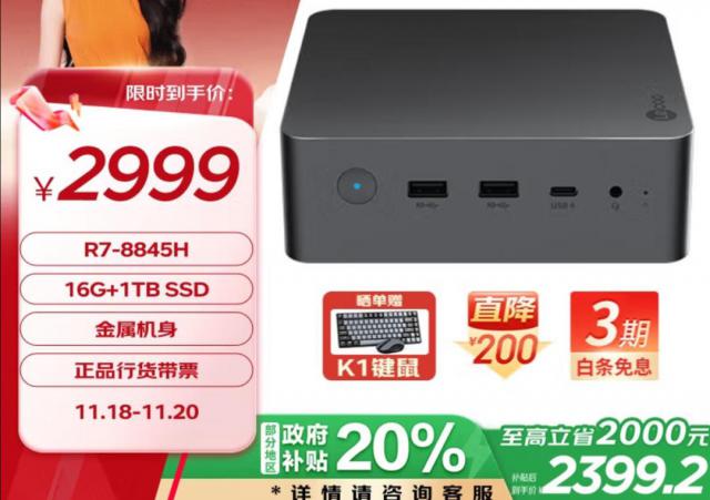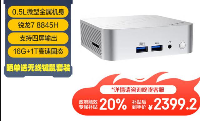 总的来说,迷你主机确实是一个比较合适的选择,主要用于日常办公、网络游戏娱乐、视频播放等有固定使用场所的应用。最重要的是现在有国补促销,价格也挺实惠的——国际品牌锐龙 7 8845H 主机也不到 2500 元!