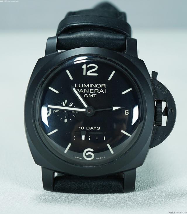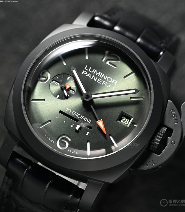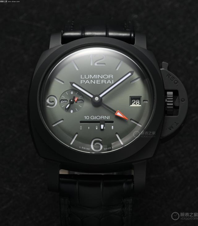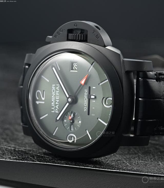 为了容纳 10 天动力的 P2003 沛纳海庐米诺自动机芯 1483,使用 44 黑色陶瓷表壳mm。沛纳海的陶瓷壳,基本上都是哑光处理。哑光表壳,还可以更好地衬出泡泡镜。44 在沛纳海中,mm是一个中间尺寸(更大更大 47,小一些有 42/40)。手腕偏瘦,44 还可以戴上。庐米诺是沛纳海有表护桥系列,防水防水。 100 米。