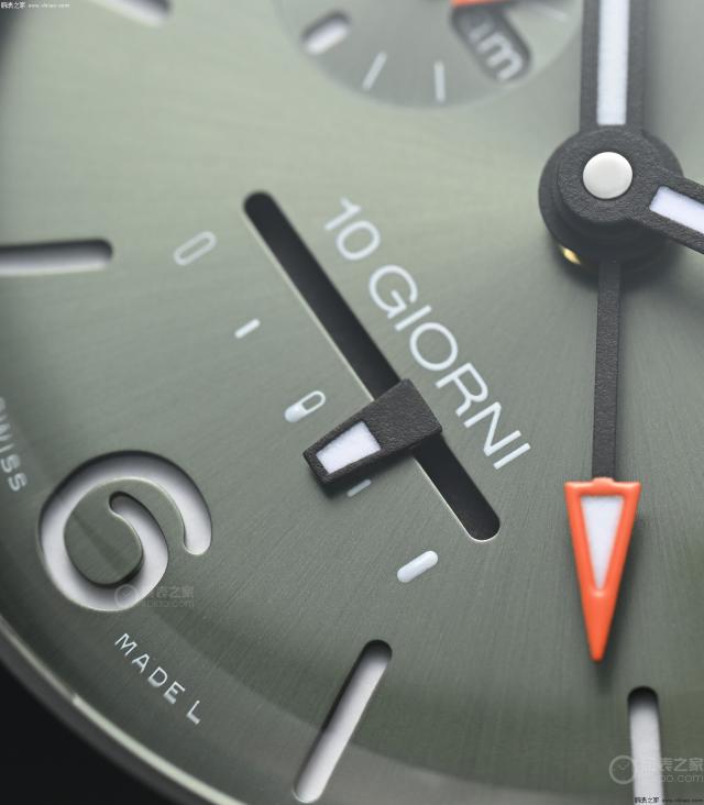 与上一代相比,新庐米诺车型 1483,“三明治”表盘和凸起的“泡泡镜”镜面,这些沛纳海的标志性特征一如既往。新的绿色磁盘上有放射线装饰。手表盘上的 10 天动力,从过去的“ 10 DAYS “改为意大利语” 10 GIORNI "。细节调整,颜值也进一步提升。