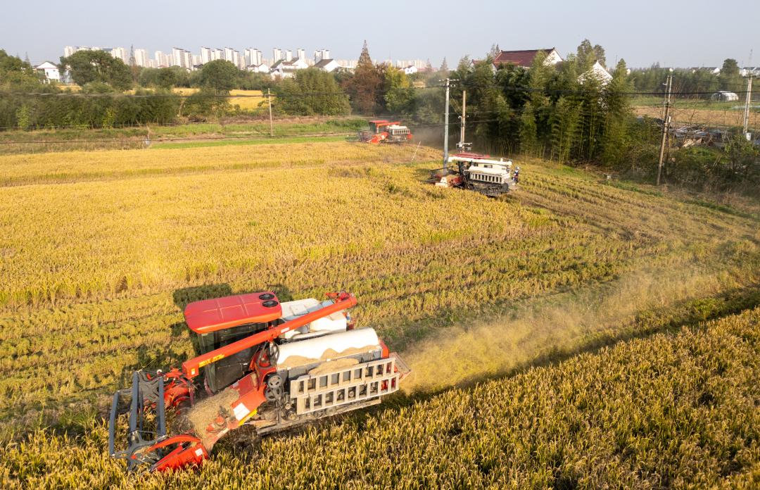 张堰镇农业农村服务中心工作人员闻伟军表示,为确保三秋工作顺利开展,镇农业服务中心每天对镇上“三秋”进展进行详细统计,了解收获情况,及时提醒农民注意天气变化,利用好天气抢收抢种。同时,积极帮助部分合作社协调农业机械资源,预约烘干基地烘干粮食,预计月底前完成全镇水稻收割工作。