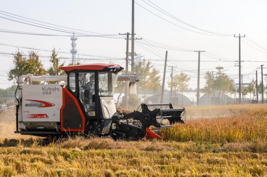 在田野边缘,合作社负责人杜文军密切关注收割机的工作。“收获这40亩大米后,今年的收获任务就完成了,以后还会种麦子和蚕豆。”杜文军说。