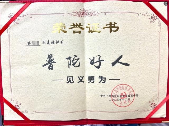 此后,柴先生的见义勇为行为引起了极大的关注,上海市普陀区委宣传部计划向柴先生颁发“见义勇为”证书。