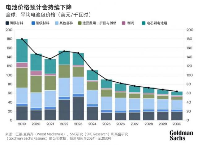 高盛集团(Goldman Sachs)最近的一份报告预测, 2026 2008年,电动汽车电池成本将降低近几年 预计价格将从50%开始 2023 年 149 美金 / 千瓦时降到 80 美金 / 千瓦时。到 2030 2000年,这个数字可能会下降到 60 美金 / 千瓦时。