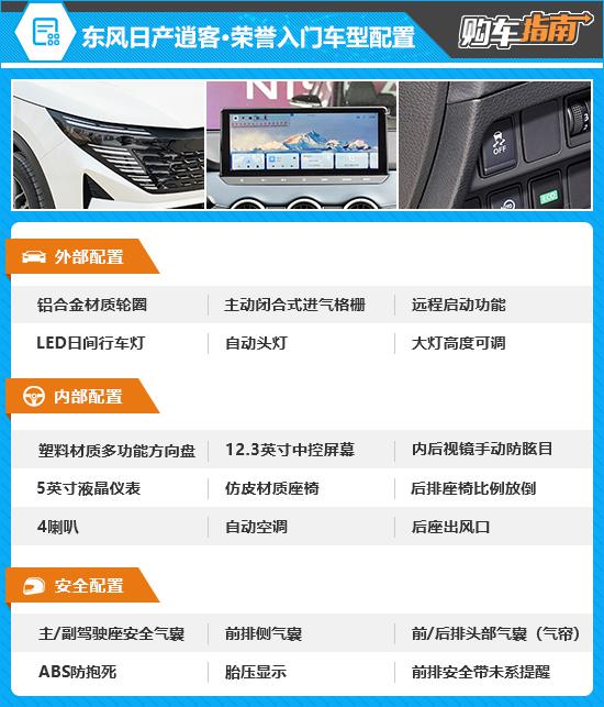 10 月 20 日,东风日产逍客 · 荣誉正式上市,共推出。 2 车辆,参考价格 12.59-13.40 一万元,限时一口价 9.98-10.88 万元。与此同时,东风日产官方还发布了真诚更换礼品、真诚金融礼品、真诚精品礼品等权益(详情请咨询当地经销商)。