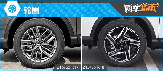 在轮毂方面,逍客 · 荣誉提供 17 英尺和 18 两种轮毂供消费者选择。入门级车型配置 17 英尺轮毂,轮胎规格为 215/60 R17;提供顶级车型 18 英尺轮毂,轮胎规格为 215/55 R18。