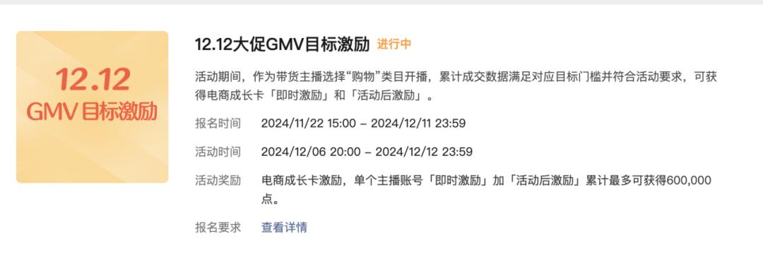 最近,见实还注意到微信小店发布了12.12大促GMV目标激励。