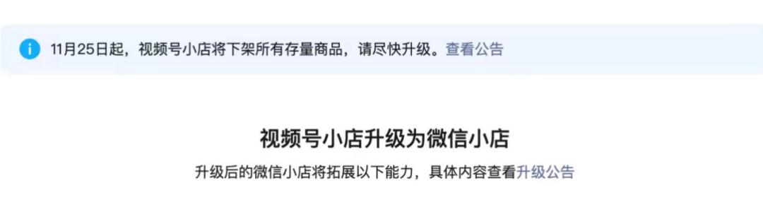 尚未将视频号小店升级为微信小店的商家应尽快升级。