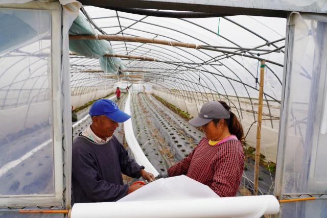 据介绍,4 薄膜分别是薄膜、小拱形薄膜、二棚薄膜和温室薄膜。每层薄膜都有其相应的功能:薄膜可以贴近路面,减少土壤热量的流失;小拱形薄膜和温室薄膜形成多层隔热层,可以有效阻挡外部冷空气的入侵;二棚薄膜位于小拱形薄膜和温室薄膜之间,可以进一步提高保温性能。"我们还在温室内进行了边缘加固,防止冷空气侵入边缘。”毕喜红说,如果遇到了 0 在℃以下极低温度下,工作人员还可以通过覆盖防晒网来提高保温性能。