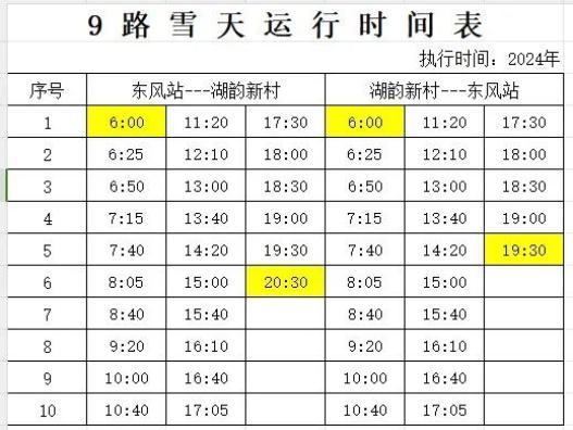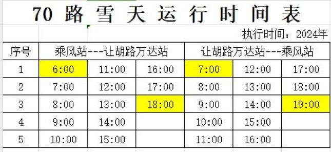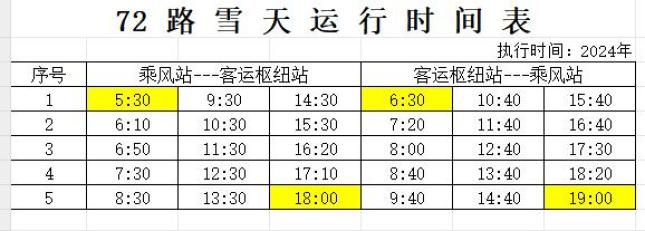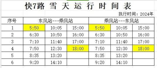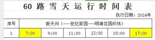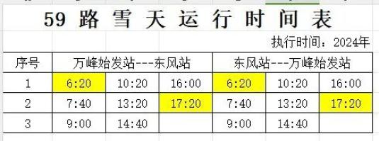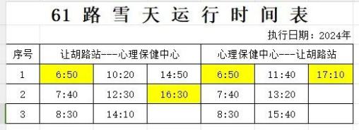 关于启用雪天运行时间的通知