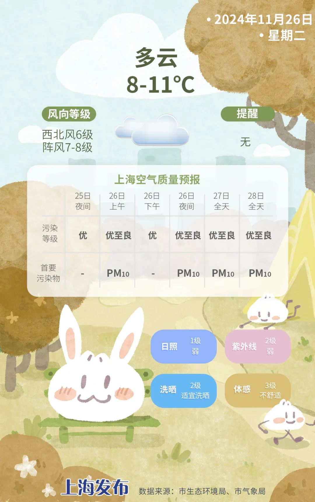 随着冷空气逐渐占据主导地位,今天阴天气温明显下降,全天气温在8-11℃之间。早上出门温度还是10℃,晚归只有7-8℃。尤其是在“风寒效应”的加持下,体验会很冷。请注意及时添衣保暖,外出时注意抗风。