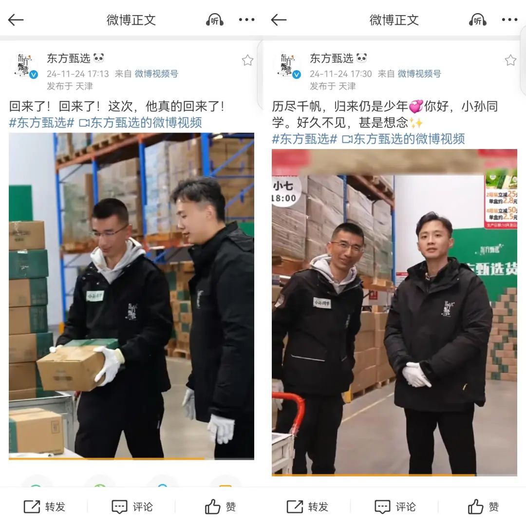 东方甄选微博欢迎孙东旭“回归”