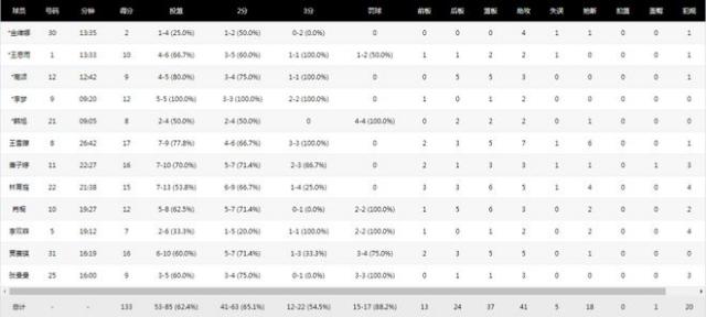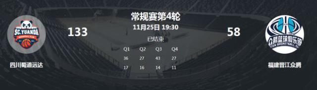 本届四川女篮首节即将举行 36-17 领先 19 分,次节 27-16 再赢 11 得分,上半场已取得 63-33 领先 30 得分优势。第三节,四川女篮 43-14 净胜 29 分,并在末节 27-11 再赢 16 分,最后以 133-58 狂胜福建女篮 75 分。
