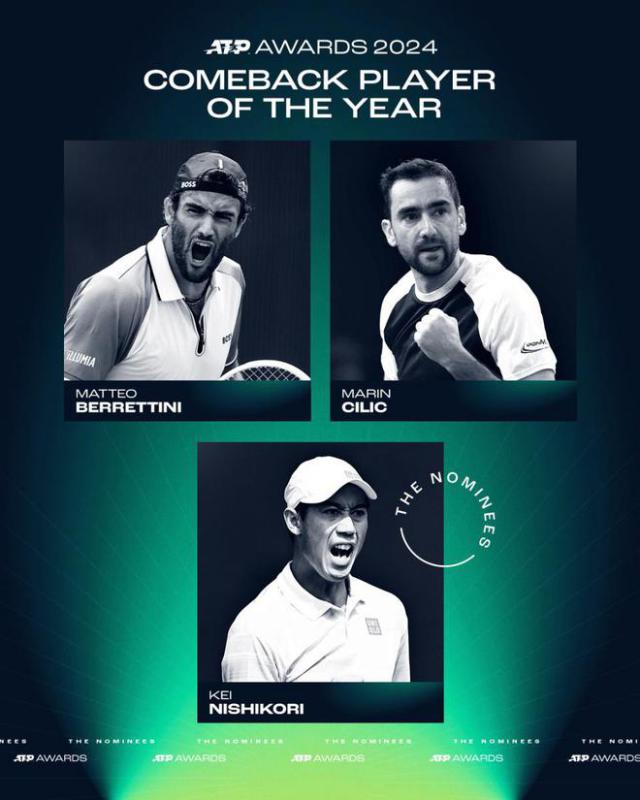 ATP官方宣布年度最佳备选!最佳新人入选商业竣工,竞争对手只有一人。
