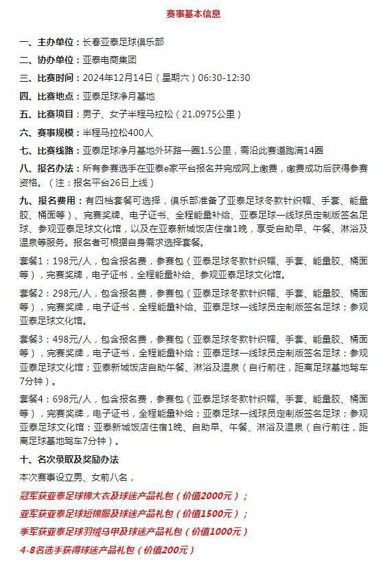 中国第一场足球主题马拉松,亚泰基地绿色半程马拉松12月开始。