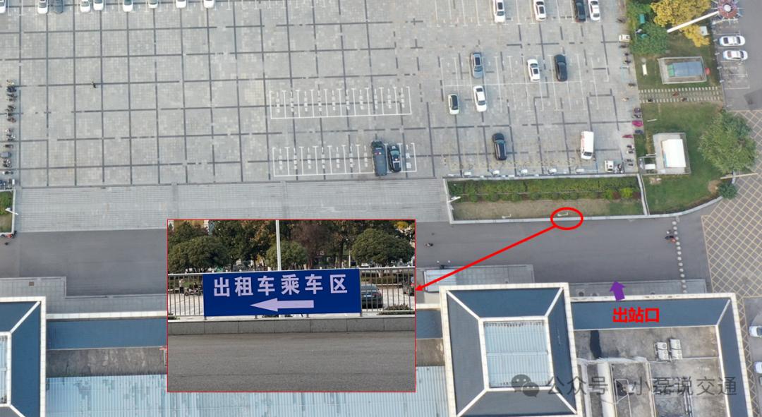 出口加上出租车乘车区标志,方便乘客快速乘车,提高乘车效率。