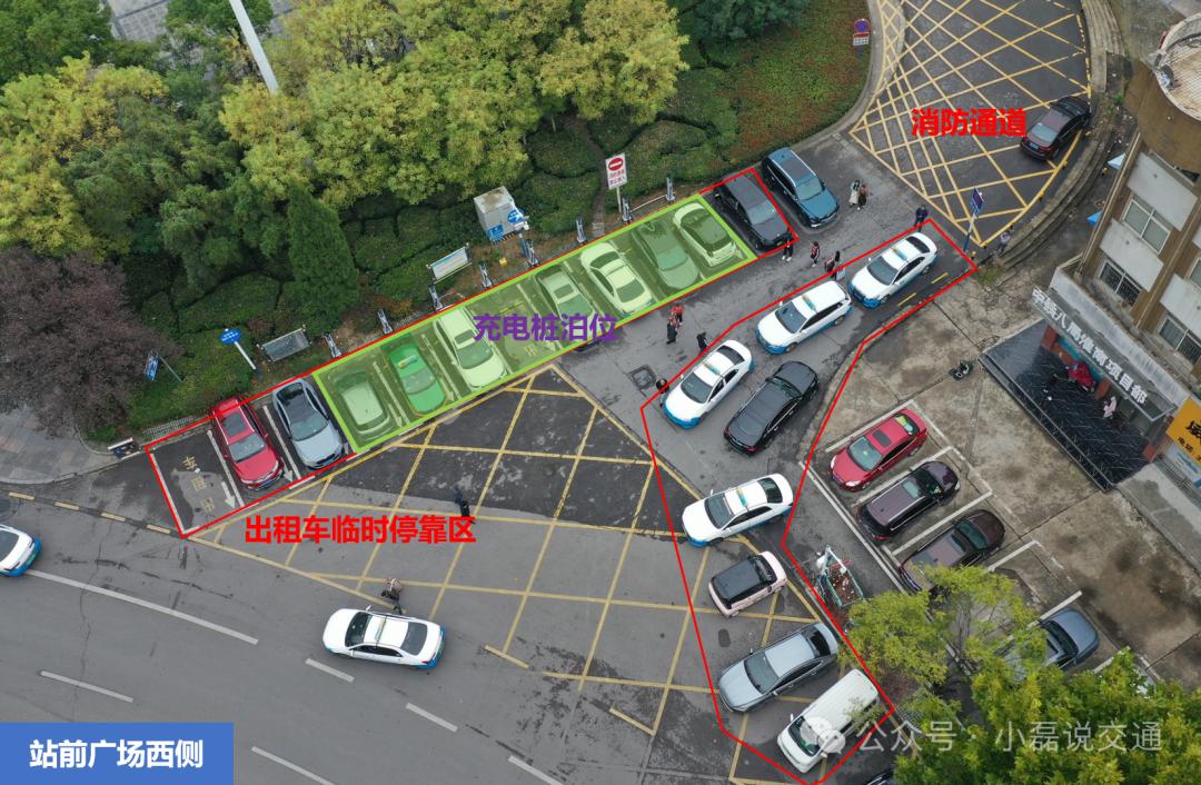 在解决车辆乱停乱放、燃油车占用充电桩泊位等问题的同时,使乘客出行和出租车停车更加方便、安全。市公安局交警支队与淮南建发智能停车管理有限公司合作,重新规划淮南站出租车临时停车点,在车站前广场离出口近期设置20个停车位,包括17个临时出租车停车位和3个值班停车位,两个停车位间隔5m,单个停车位宽2.5。m,方便车辆进出和上下客。与此同时,协调建发智泊公司将站前广场停车场的免费时间从30分钟增加到1小时。