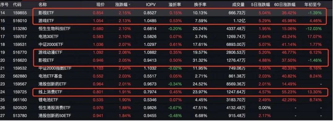 “谷子经济”概念股持续上涨,影视ETF、从近60天的涨幅榜来看,多个相关主题ETF的涨幅超过30%甚至超过40%,这对游戏动画ETF来说是相当有利的。
