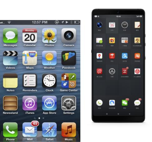 除功能抄袭外,还可以借鉴UI风格,比如大家熟悉的锤子手机就是拟物化,但在过去是IOS。 6以前的系统都是拟物化的,在后面的系统版本中变成了简单的设计风格。