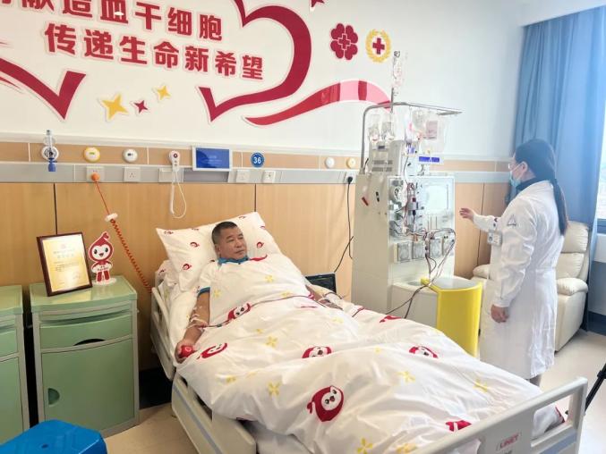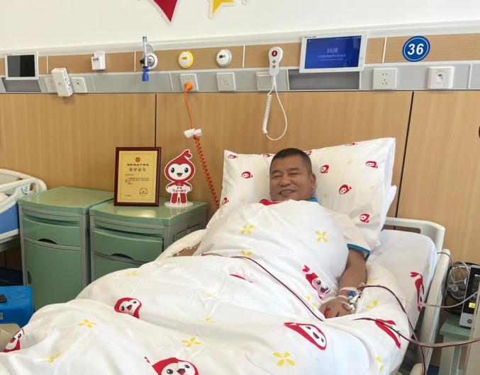 中午11点50分,李支林顺利完成了采集。他体内218毫升的造血干细胞被成功分离,第一时间放入冰箱,送到病人所在的医院。