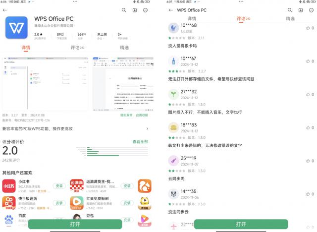 然而。。。这 bug 是真多啊。当托尼使用时,它已经遇到过几次。 WPS 文件无法打开, CAJ 闪回之类的问题,一打开应用商城,顾客的评论就告诉我,原来这不是个例。