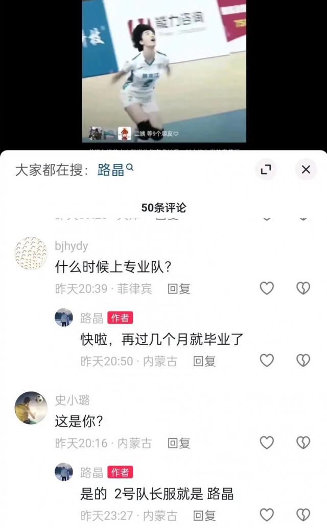 去年,路晶在学青会上大放异彩,当时她代表黑龙江铁力一中参加比赛。就比赛而言,她的身高 1.87 米,弹跳高度挺好的,核心力量,扣球速度也快。真的是一个难得的好苗子,吸引了很多专业团队的目光!当时天津、上海、北京等队都向她抛出了橄榄枝!