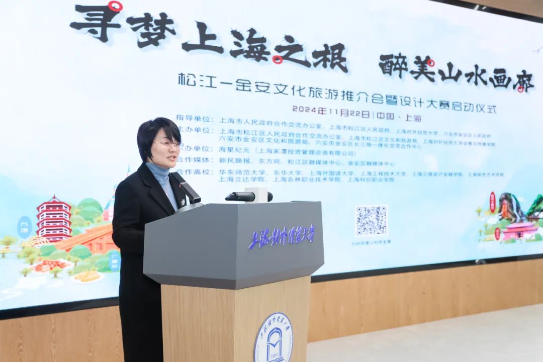 11月22日,松江-金安文化旅游推介会暨设计大赛启动仪式在上海对外经济贸易大学举行。活动以松江和六安深化合作为主题,旨在增进相互理解,打造文化旅游品牌,充分发挥松江大学设计文化旅游产品的资源优势,从上海之源走向长三角,缔约两地合作成果。