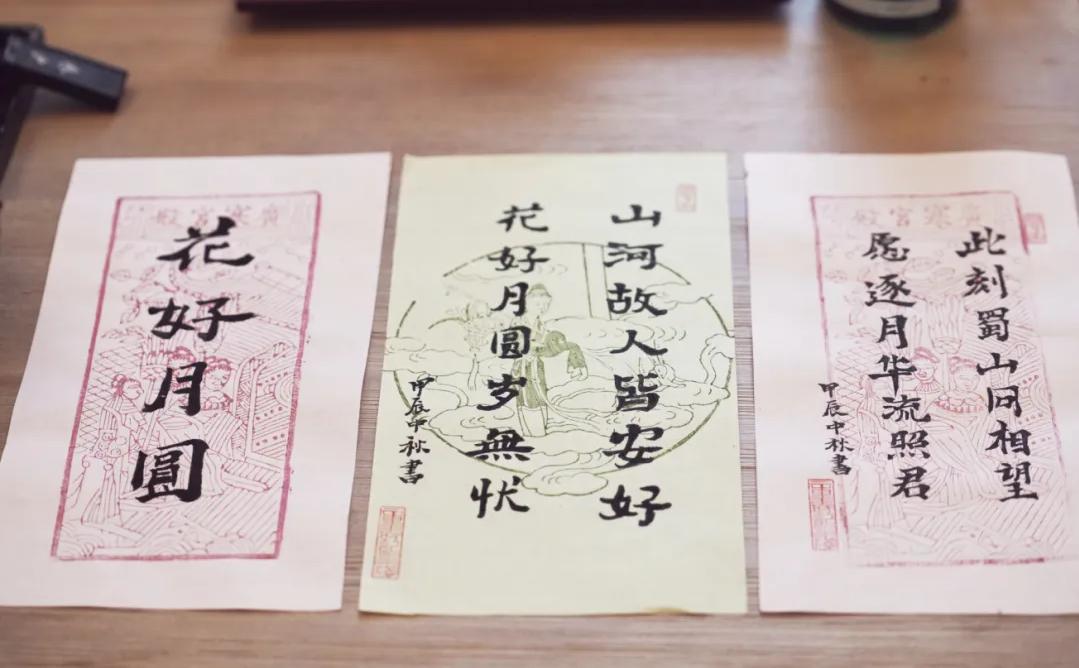 童寿记木板水印花笔记传承人童敏在蜀山区非遗项目中走进新粮库,为市民和游客送上美好祝愿。