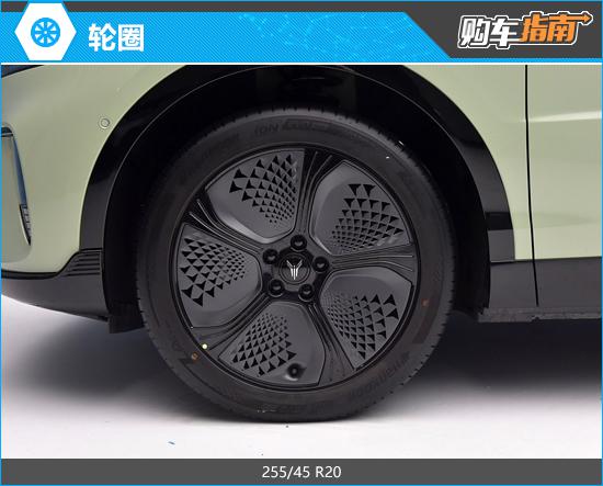 岚图知音全系车型全部配备 20 英尺轮毂采用低风阻设计,棱形镂空装饰相当独特,符合整车年轻化的定位。轮胎的具体规格是 255/45 R20,胎宽和偏平比较适中,能很好地兼顾操纵性和舒适性。