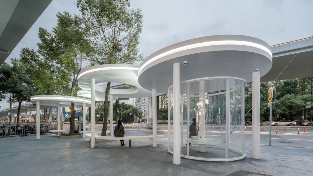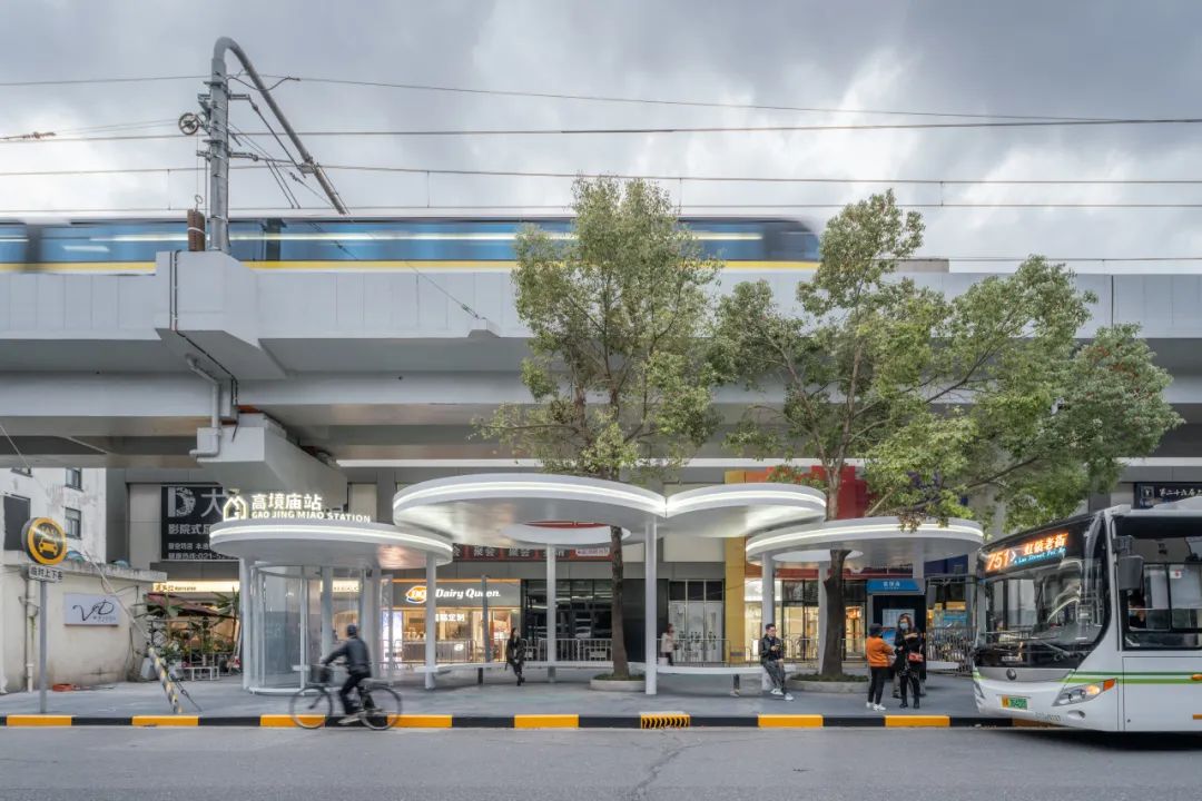高境庙站位于城市高架缝隙处,紧邻地铁3号线殷高西路站,是典型的带状交通空间。改造之初,由于公交车站、出租车停靠点高度聚集、人流量大等因素的影响,候车区视野被遮挡,候车空间紧凑,局限性强。