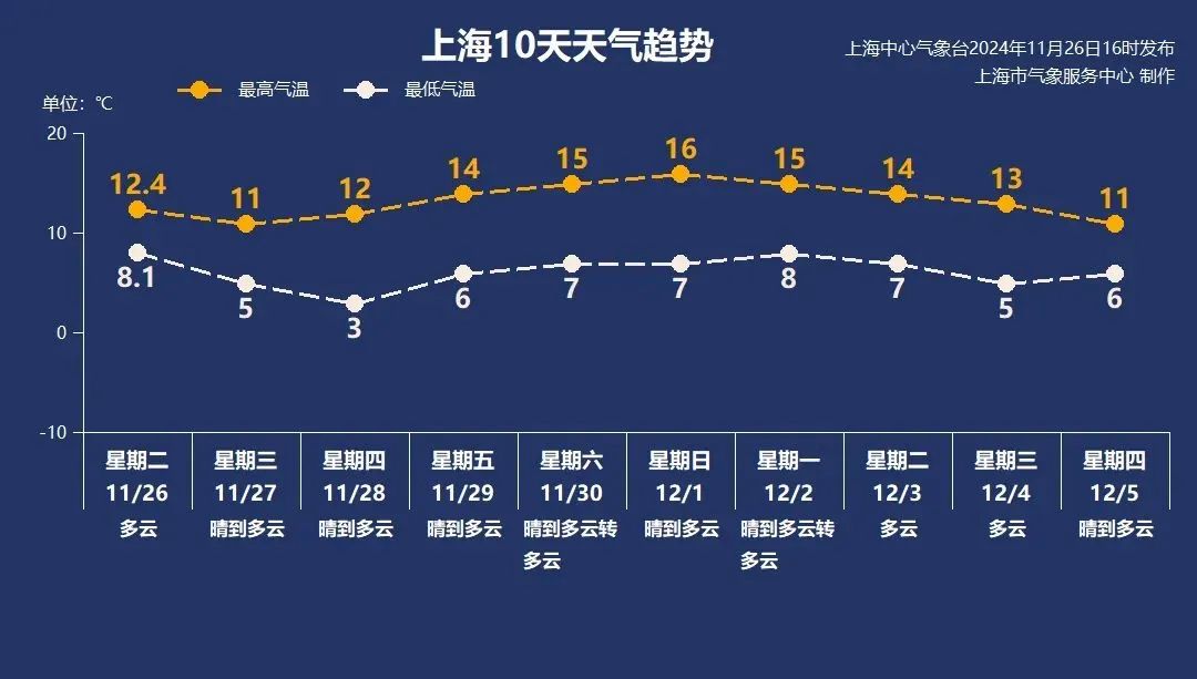 周四上午,上海寒流过程中的最低温度将出现在城市地区。 3℃,郊区 1℃左右,请加强防寒保暖措施。易感人群要多注意保护,避免感冒等疾病。未来十天,天气晴朗干燥,早晚寒冷。从周五开始,气温开始缓慢上升。预计本周末和下周初的最高气温将升至15-16℃,适合安排洗涤和干燥。