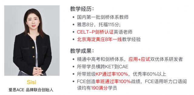 Sisi 老师:我们有一个班,KET 跟着学习,全班都有意识地互相追逐,孩子们自己告诉父母,要全班一起去考试。 FCE ……� �