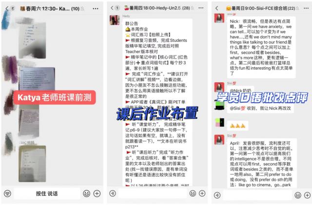 父母要做的,就是,关注孩子的进步,让娃坚持听、读、打卡,按时提交作业,收集娃娃的工作问题 & 与提高英语能力有关。问题,主动向老师提出疑问。